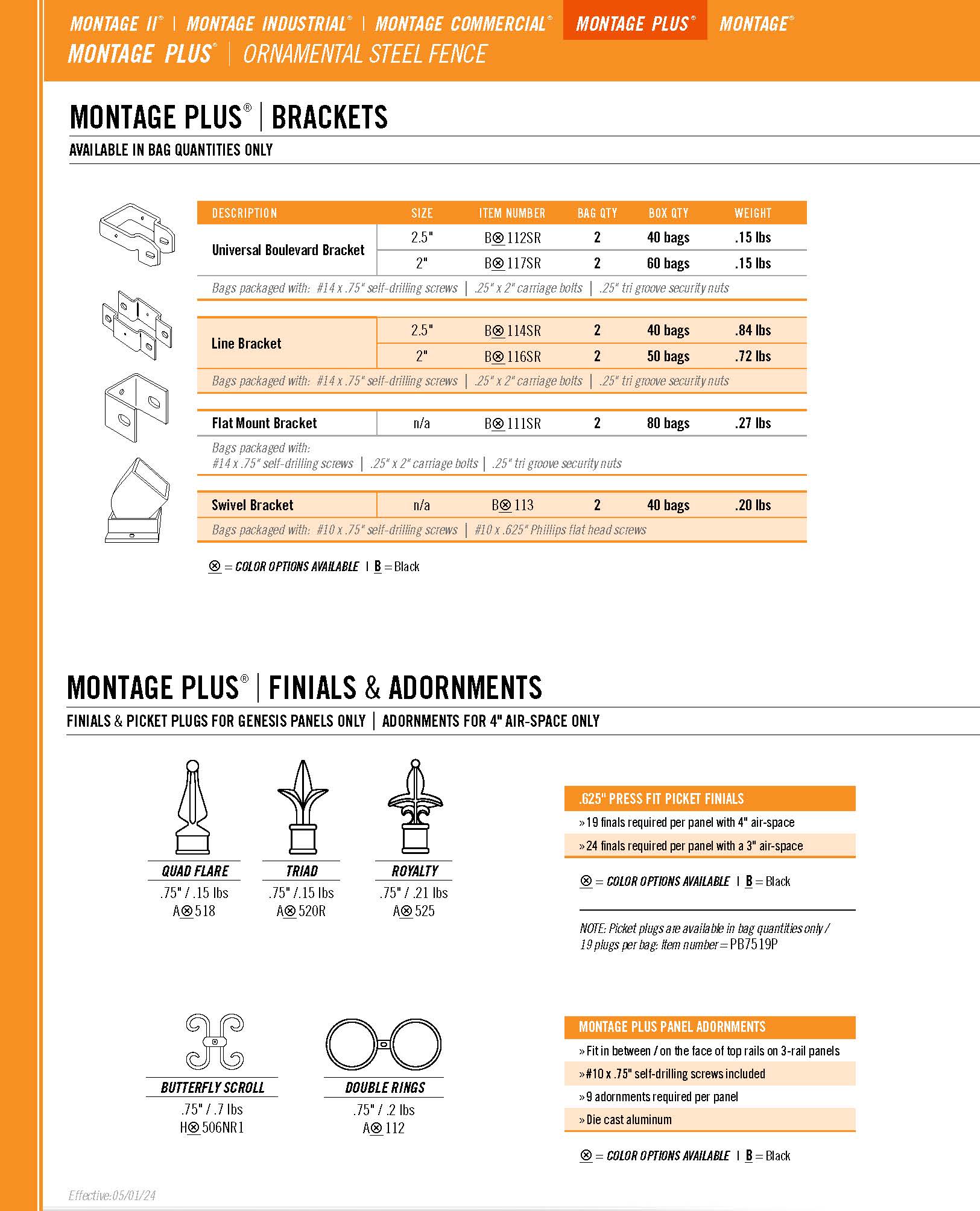 Universal Boulevard Bracket: Bags packaged with: #10 x .75" self-drilling screws | .25" x 1.5" carriage bolts | .25" Tri Groove nuts