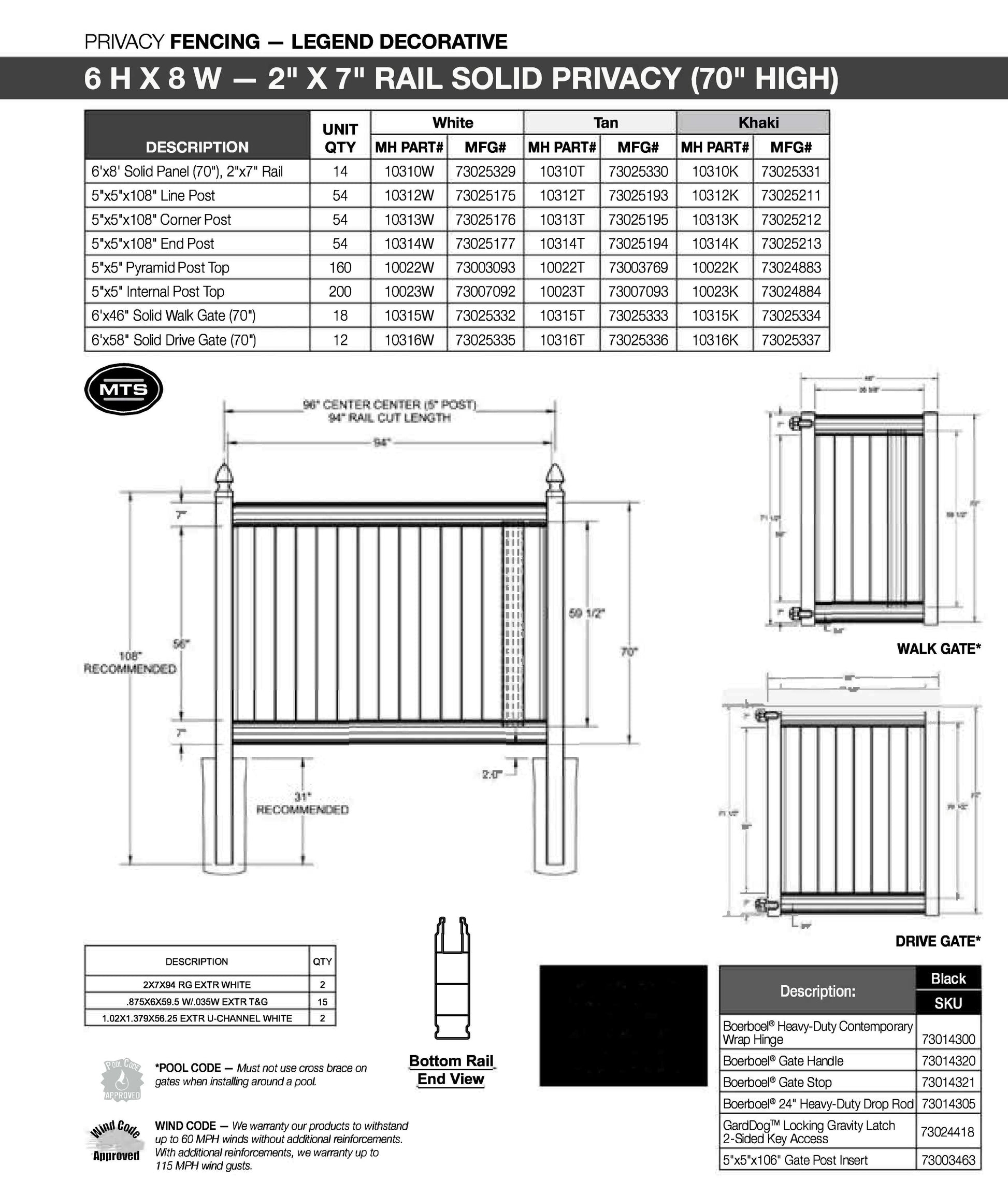 Legend's vinyl gate design delivers both strength and style. Matching walk and drive gates are available to complement each fence panel style and color.